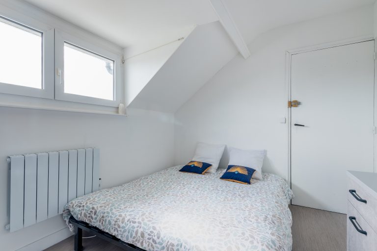 Cet appartement à 300m de la plage d’environ 22m² peut accueillir jusqu’à 4 personnes avec sa chambre avec lit double et son canapé convertible dans la pièce de vie. Il dispose également d’un extérieur commun et permet de voir la mer au loin depuis la chambre et la pièce de vie !
