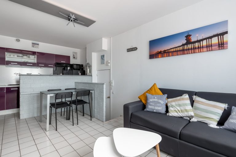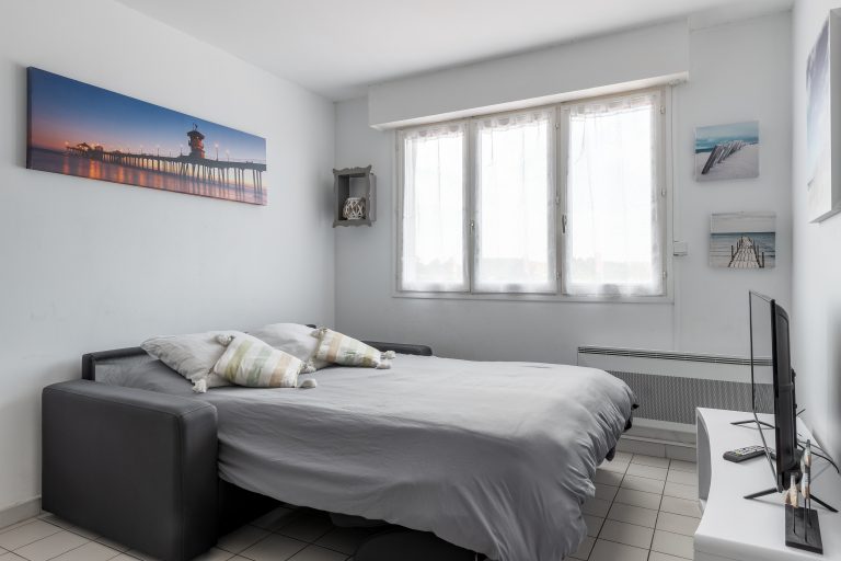 Cet appartement pouvant accueillir jusqu’à 4 personnes grâce à sa chambre avec lit double queen size et son canapé lit est situé proche du centre ville et dos à la marina de Courseulles.