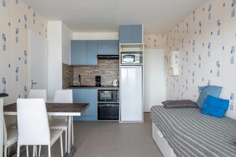 Cet appartement de 36m² dont 8m² de loggia offre une magnifique vue sur le port de plaisance et la mer. Il peut accueillir jusqu’à 4 personnes avec sa chambre avec lit double et son canapé lit dans la pièce de vie.