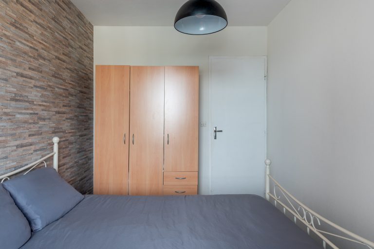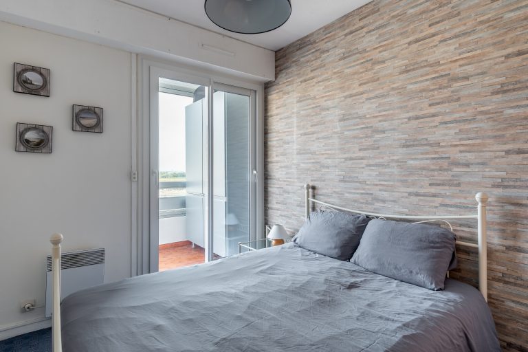 Chambre avec un lit double (140cm) et accès à la loggia.