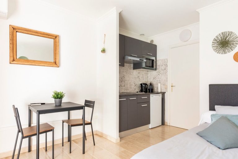 Il est meublé et équipé de tout ce dont vous avez besoin pour un séjour agréable et confortable. Vous pourrez prendre vos repas sur une grande terrasse de 15m2 et vous trouverez juste en bas de la résidence, tous les commerces de proximité (boulangerie, boucherie, presse, épicerie) afin de pouvoir tout faire à pied.