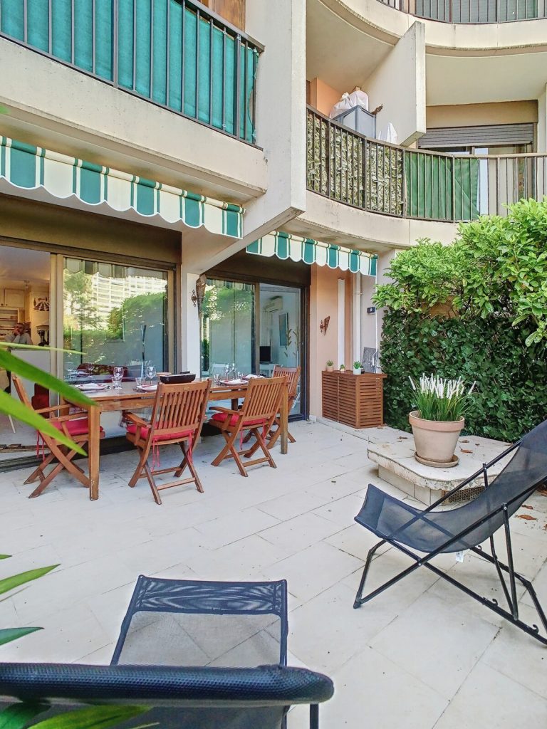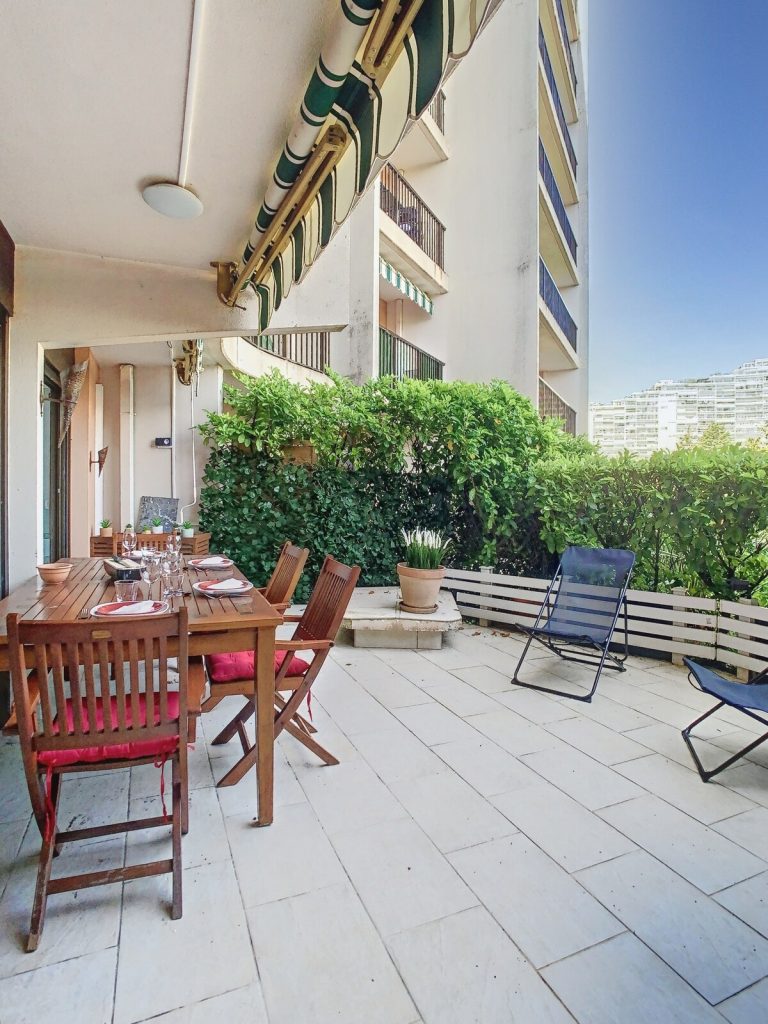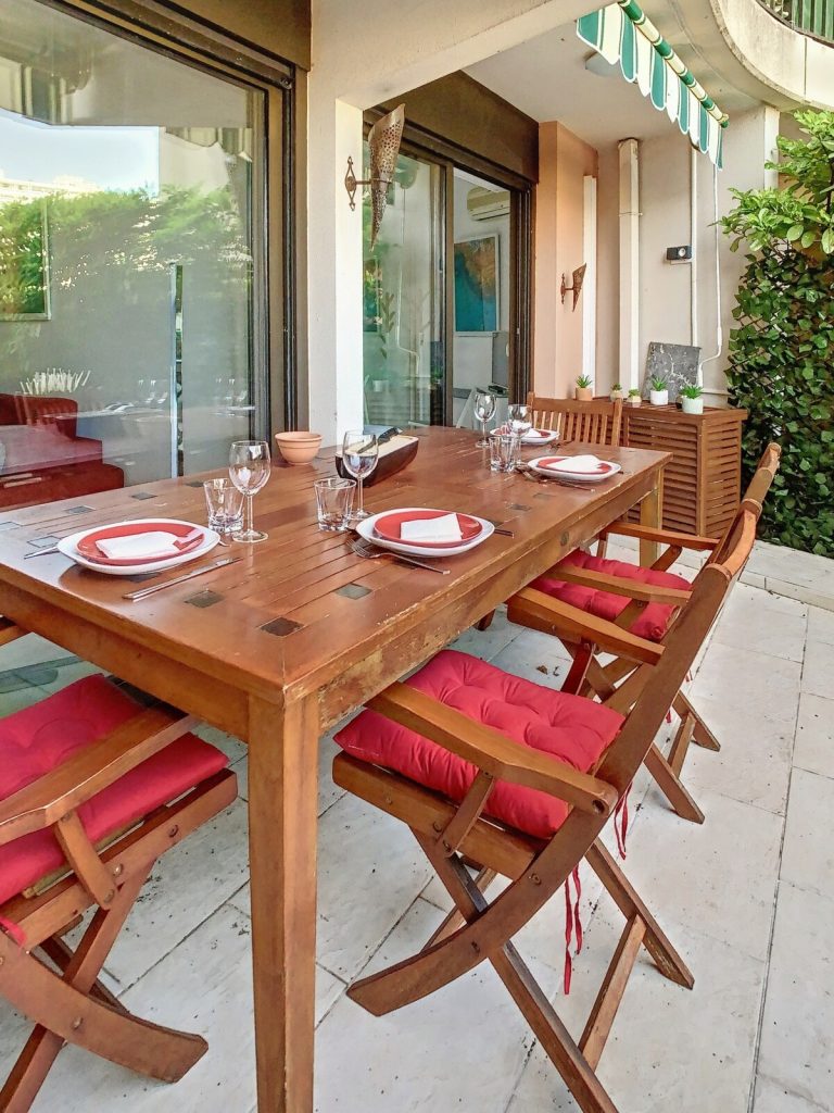 La terrasse offre l’espace idéal pour vos repas en plein air, tout en savourant la tranquillité de la Marina suite à vos promenades le long des berges de la Siagne.