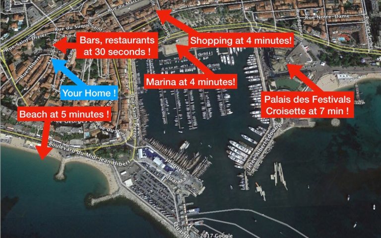 – EMPLACEMENT STRATÉGIQUE à 9 minutes à pied du Palais des Festivals et des plages et 13 minutes de la gare de Cannes.