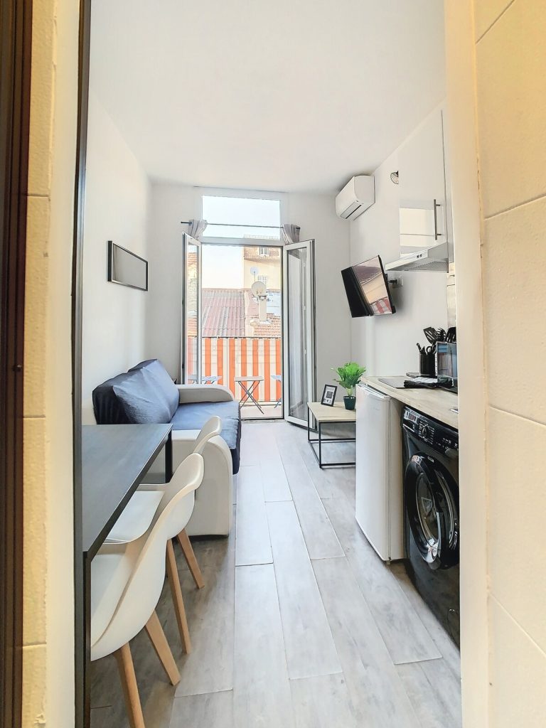 Profitez d’un séjour confortable dans ce joli 2 pièces de 31m2 climatisé. vous serez à seulement 15 minutes à pied du Palais des Festivals et des plages de la Croisette.