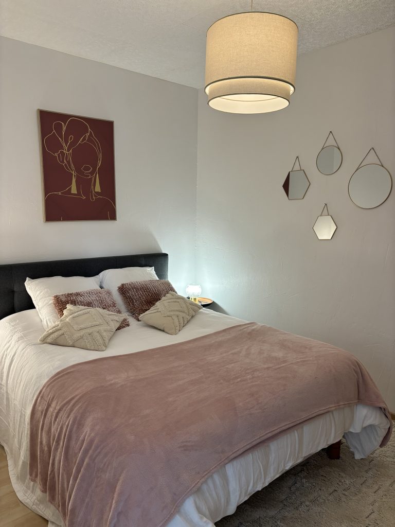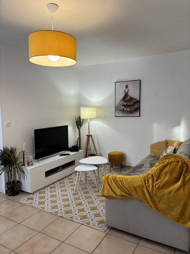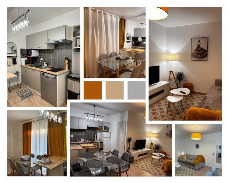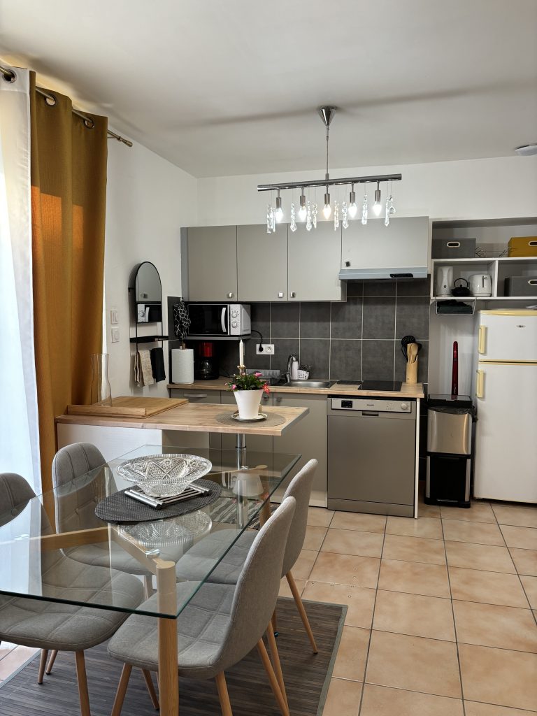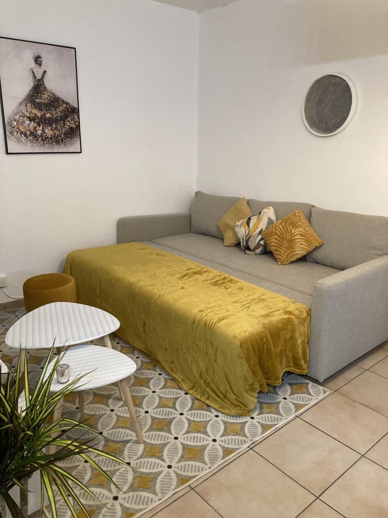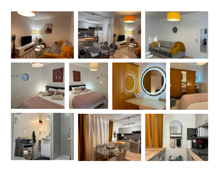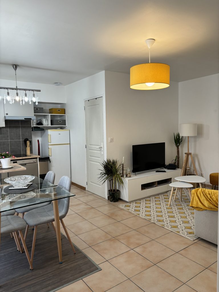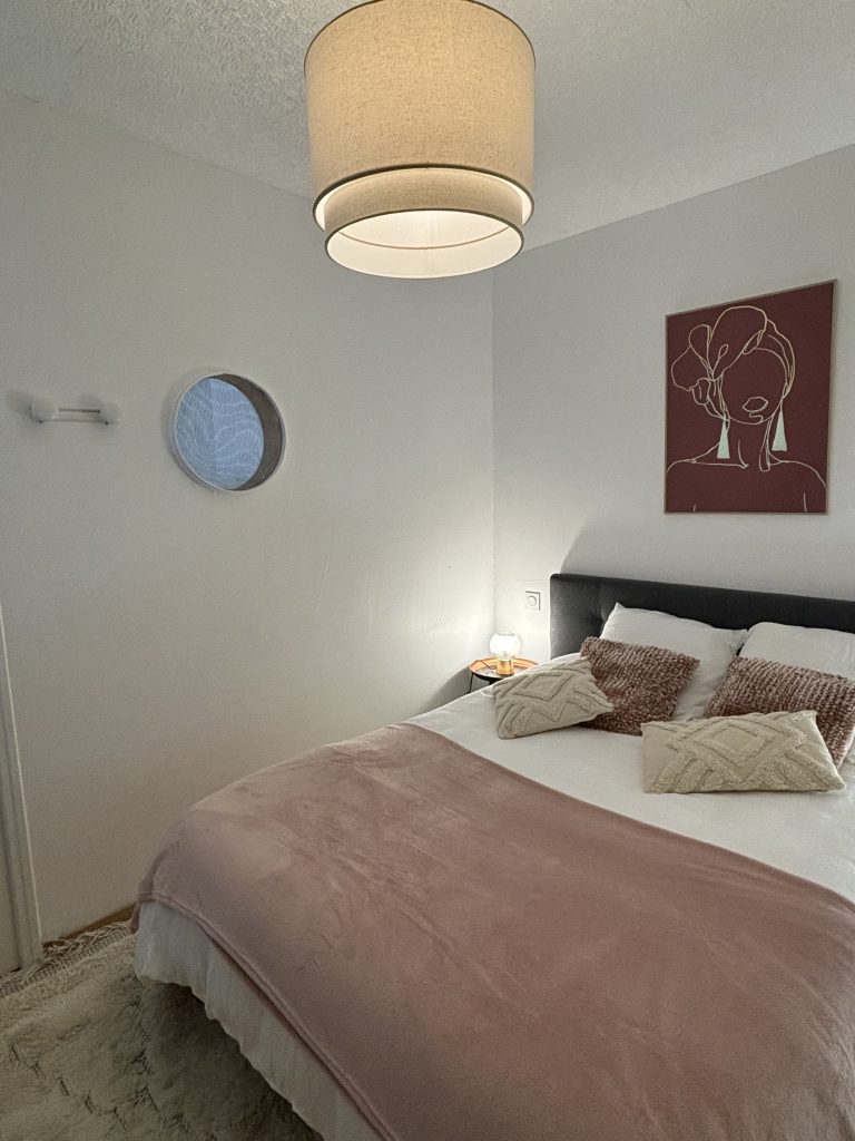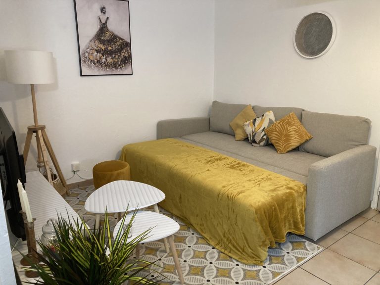 Bienvenue dans notre T2, où chaque détail a été soigneusement pensé pour créer une atmosphère chaleureuse et un espace fonctionnel. Installez-vous confortablement sur le canapé convertible, profitez de la télévision et des luminaires apaisants pour une ambiance accueillante. Ajoutez une touche chaleureuse avec des bougeoirs, parfaits pour des moments conviviaux.