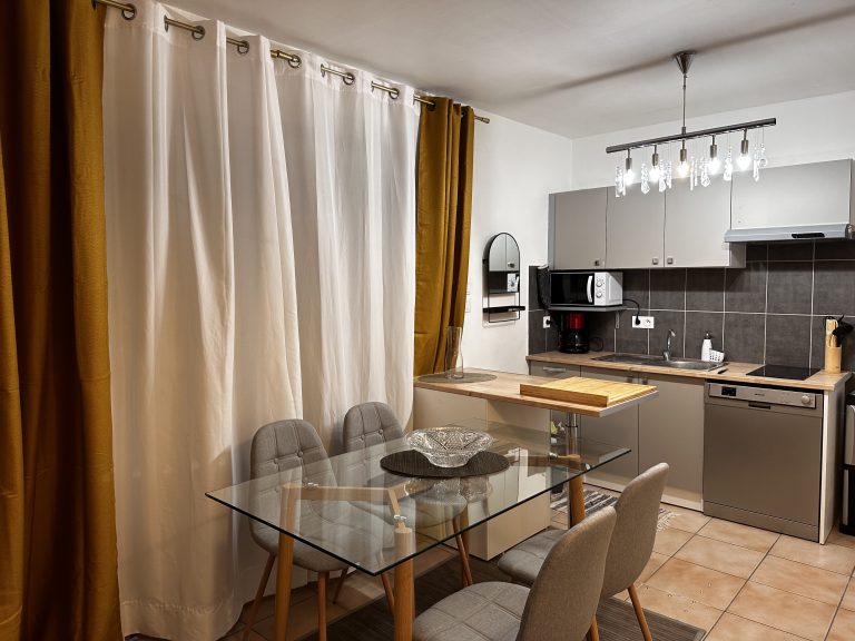 Détendez-vous dans cette oasis paisible, idéale pour les voyageurs d’affaires. Proche d’Eurexpo et du parc technologique, elle offre un environnement calme. L’appartement marie harmonieusement les couleurs pour une ambiance chaleureuse. Avec un canapé confortable, une table à manger et une cuisine équipée, vous vous sentirez chez vous. La chambre avec un lit double invite à la détente. La salle de bains moderne complète cet espace, avec une décoration soignée et un accès à la fibre.