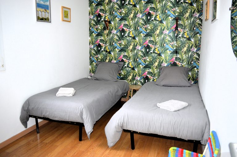 Une chambre avec deux lits simples.