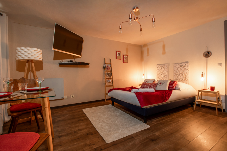 L’appartement se situe dans un immeuble calme, au premier étage avec une vue sur le cœur de la ville.