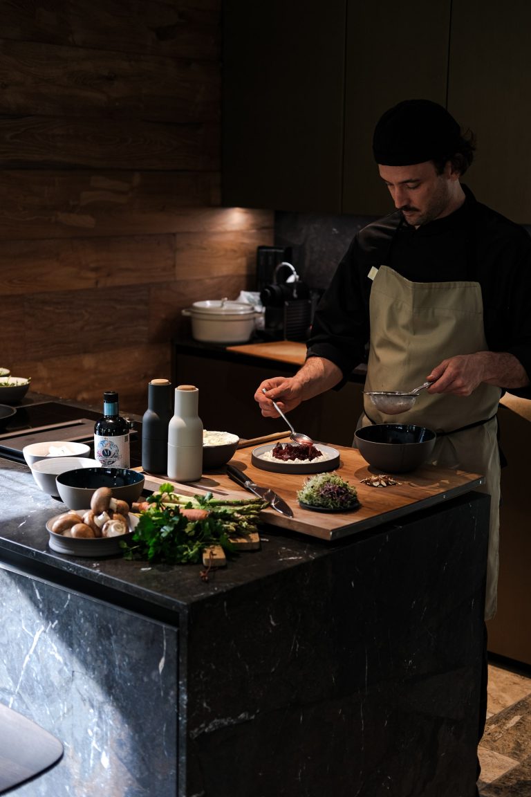 Le chalet offre un service de conciergerie 24h/24 et est équipé de matériaux de la plus haute qualité tels que les appareils électroménagers de luxe Gaggenau, KitchenAid (grille-pain, bouilloire, robot de cuisine), une machine à café Nespresso, et des ustensiles de cuisine Serax. Dans la salle de spa, vous trouverez des enceintes Marshall. L’étagère à livres est signée Fausto Ibride et le barbecue est de la marque Napoleon. Nous disposons des meilleurs appareils de fitness Nohrd, ainsi que des vélos électriques de marque Cube. Le foyer est de la marque Ak47.