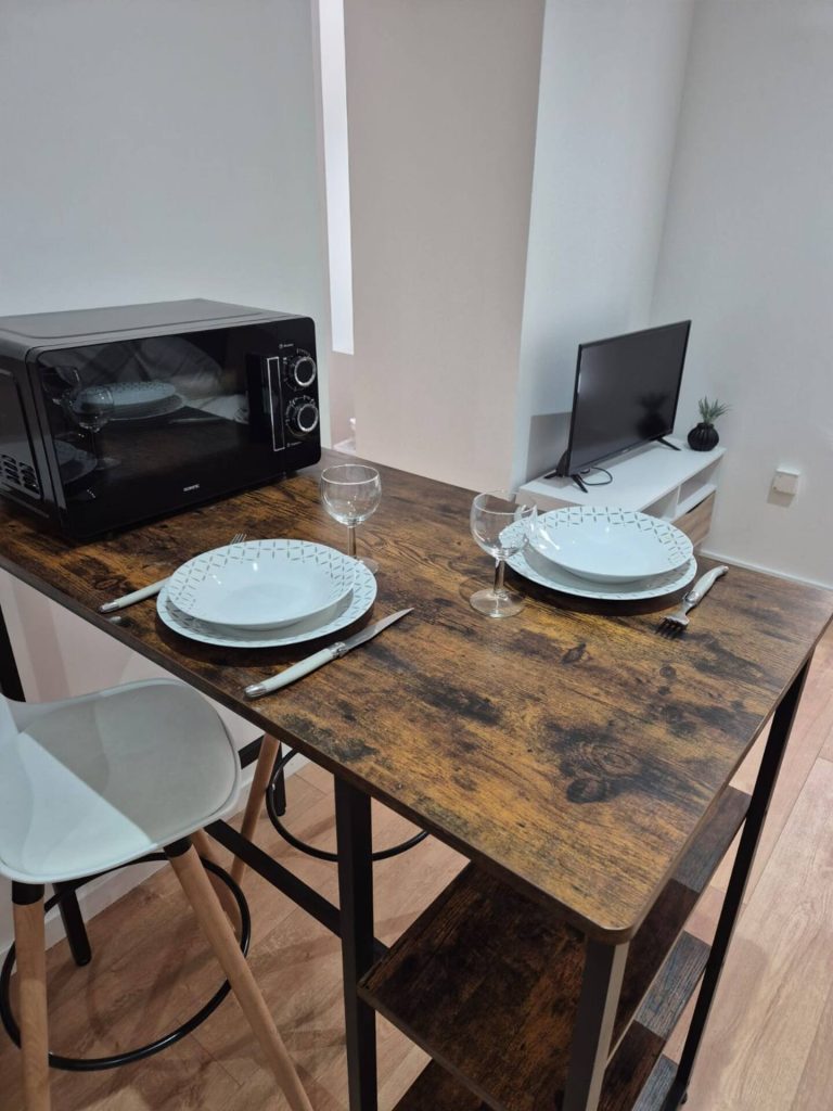 Séjournez en toute sérénité dans ce logement paisible, idéalement situé au cœur de Montbéliard. Profitez d’une cuisine entièrement équipée, d’un salon chaleureux avec canapé-lit, TV et WIFI, d’une chambre confortable avec lit double et linge fourni, ainsi qu’une salle de bain avec douche et machine à laver. Tous les services sont à proximité. Niché dans une ruelle calme, c’est le pied-à-terre parfait pour découvrir la ville.