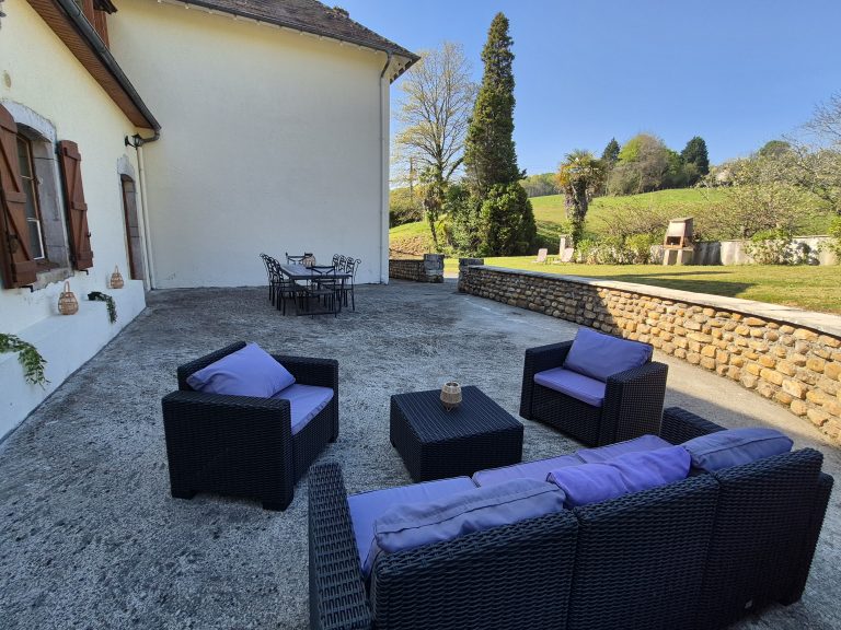 Maison de campagne rénovée à Aubertin – Allie charme de l’ancien et confort moderne ! Profitez d’un grand jardin verdoyant avec ruisseau, piscine hors-sol, terrasse avec barbecue, salon de jardin et chaises longues. À 20 min du Château de Pau, idéale pour familles et amoureux de la nature. Calme, détente et convivialité au rendez-vous.