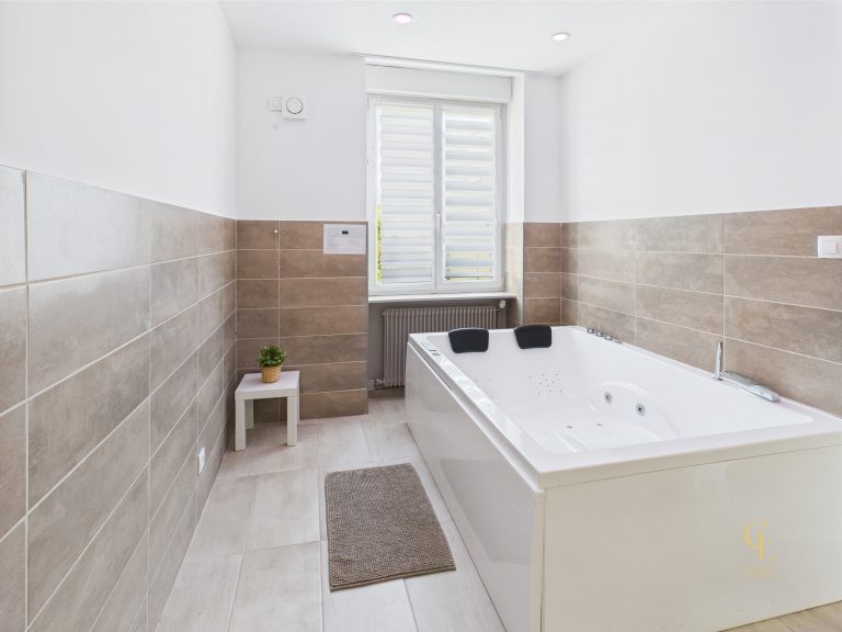 BAIGNOIRE BALNÉO 2 PLACES avec ambiance tamisée pour un vrai moment de bien-être.