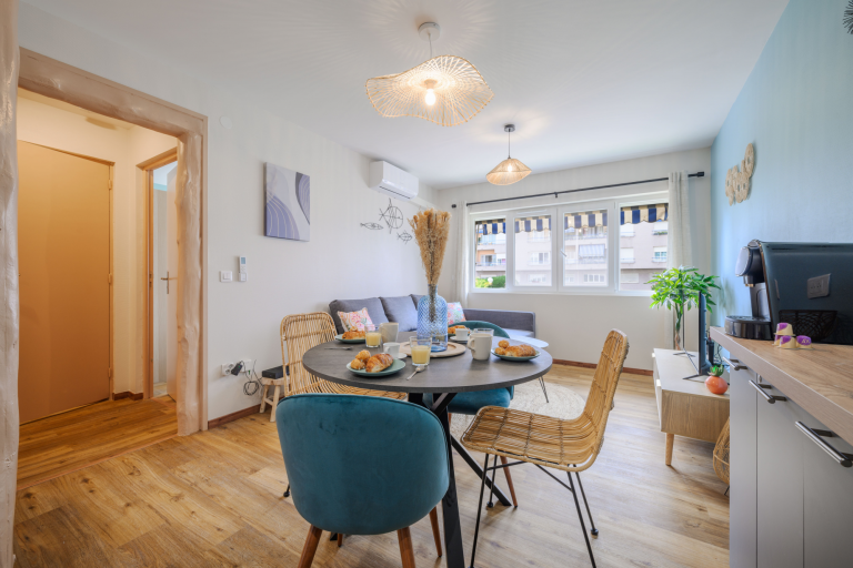 Pour vos déplacements vos vacances, séjournez dans cet appartement  » Cosy Morning  » de standing de 35m2 entièrement équipé, très fonctionnel et idéalement situé à 30 secondes à pied de la plage !