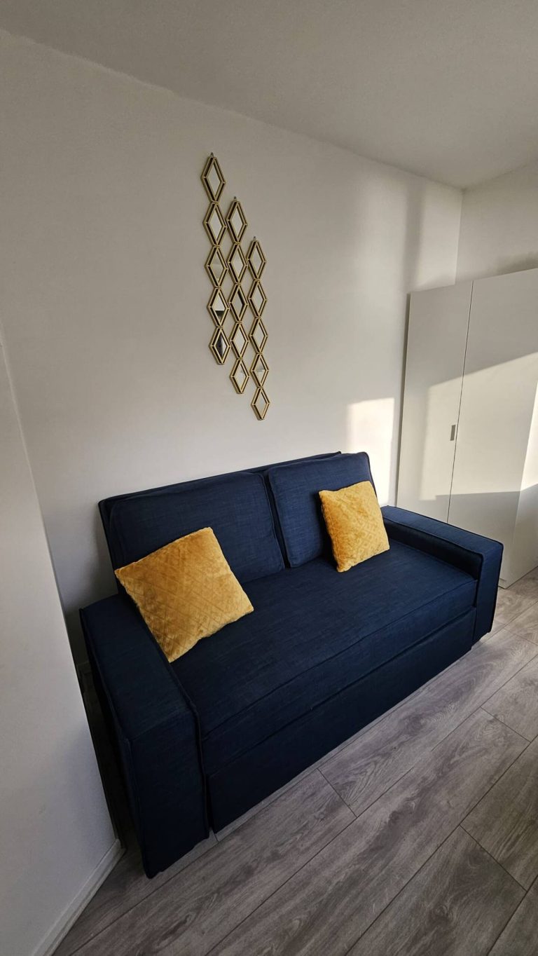 Chambre Diamond : Séjournez dans une chambre privée au sein d’un appartement partagé de 5 chambres. La chambre est équipée d’un canapé-lit confortable, pouvant accueillir 1 personne. Vous partagerez une cuisine équipée, un salon et une salle de bain. L’appartement se trouve à Créteil, dans un cadre verdoyant et calme au bord du lac, à seulement 20 minutes de Paris en métro et à deux pas du centre commercial Créteil Soleil.