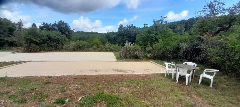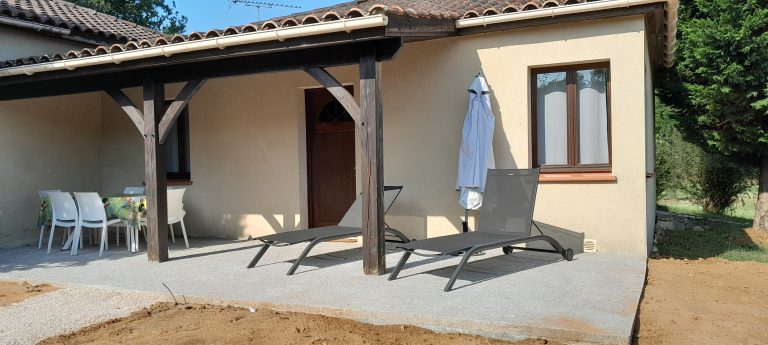 – d’une terrasse extérieure couverte de 28m², avec un salon de jardin, un barbecue, des transats.