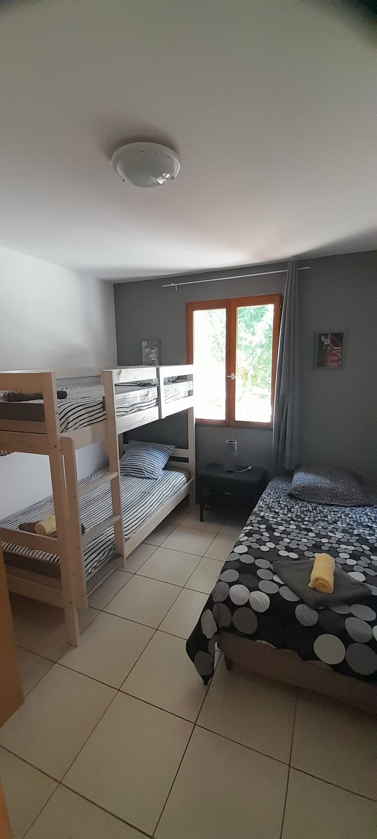 – d’une 1 chambre avec un lit en 90×190 et d’un d’un lit superposé en 90×190 et une armoire.