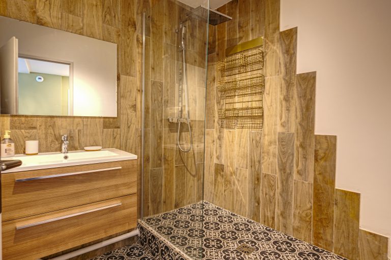 La salle de bains est dotée d’une douche à l’italienne, vous offrant un espace moderne et fonctionnel pour vous rafraîchir après une journée bien remplie.