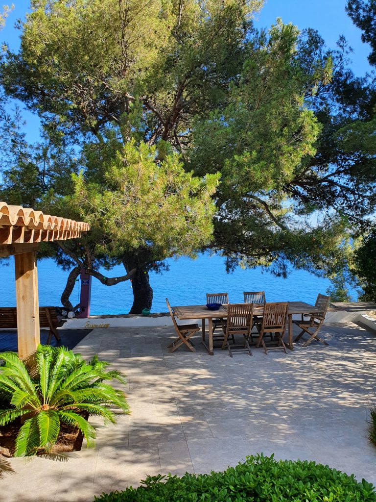 Quelques pas encore et la mer apparaît. La cuisine d’été vous invite à préparer les repas dans un cadre exceptionnel. Table face à la mer, on y prend son petit-déjeuner, l’apéritif ou le dîner Et grâce au pin contorsionniste, il y aura juste ce qu’il faut comme ombre pour se sentir au bon endroit quelle que soit l’heure de la journée. Une légère brise omniprésente nous apaise les jours de grandes chaleurs.