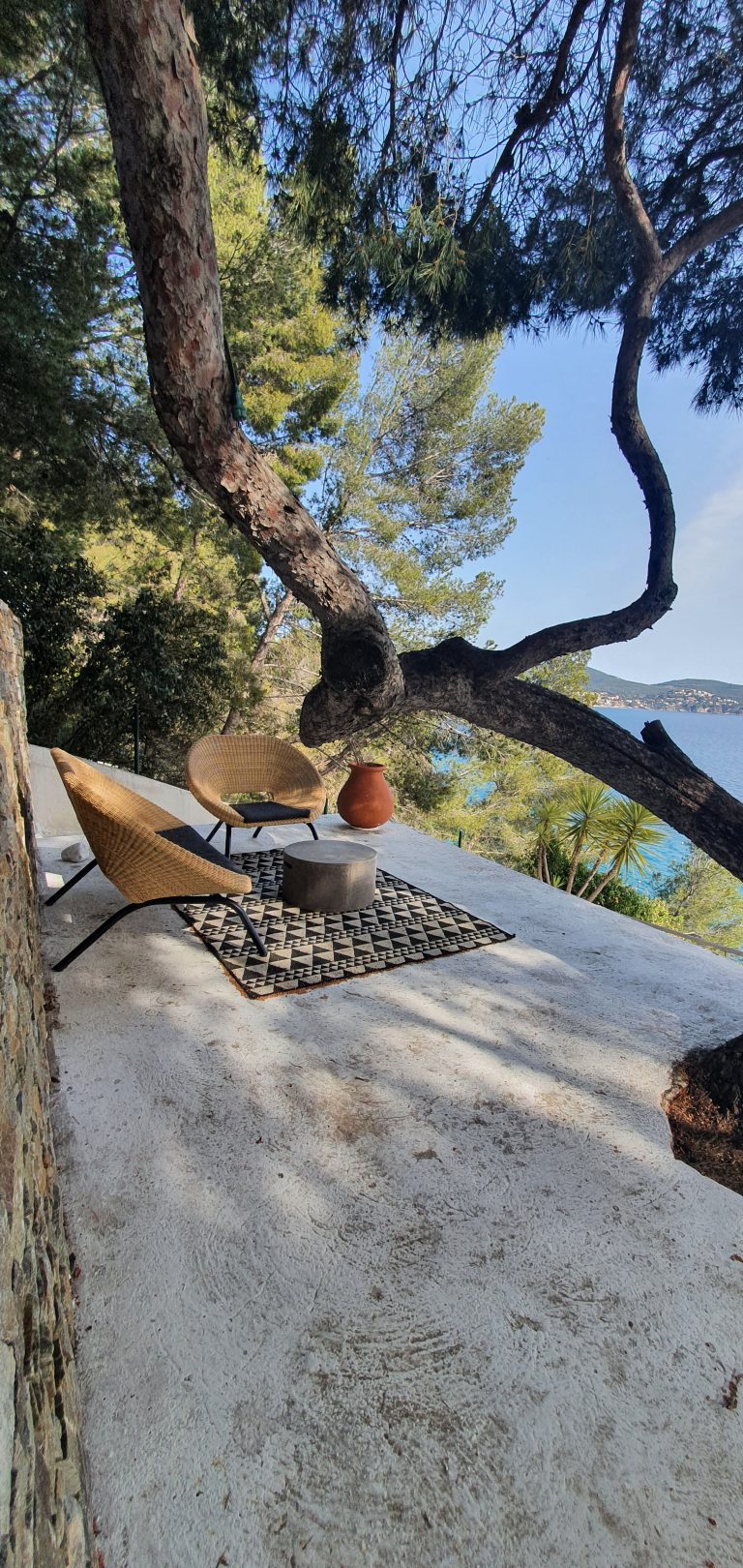 On y surplombe trois terrasses en restanque sur la Méditerranée où vous pourrez vous installer pour y lire, y écrire, déguster, être inspiré, faire du yoga ou tout simplement contempler…