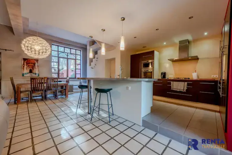 notre cuisine fonctionnelle est équipée d’une cafetière, d’un lave-linge, d’un réfrigérateur, et bien plus encore, pour vous permettre de préparer de délicieux plats lors de votre séjour. la villa dispose également d’une piscine, d’une terrasse, d’un jardin, du wifi, et de la climatisation pour un confort optimal. un grand salon vous attend pour des moments de détente en famille.