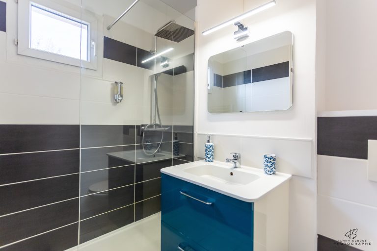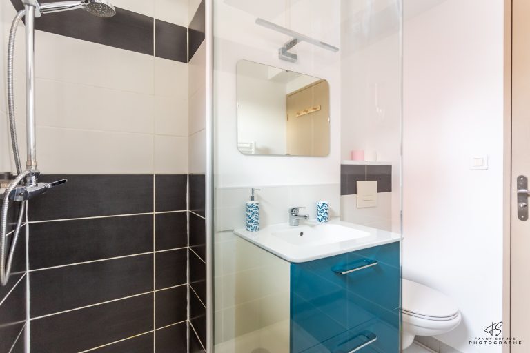 Le wifi est excellent, vous permettant de naviguer sur internet en toute fluidité. La salle de bain soigneusement décorée dispose d’une cabine de douche et d’un lavabo.