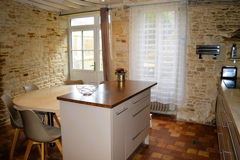 -Une cuisine équipée avec arrière cuisine et table à manger