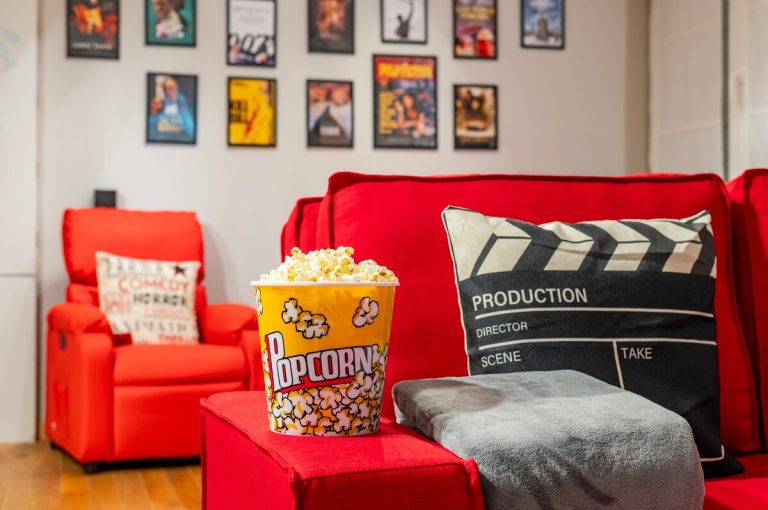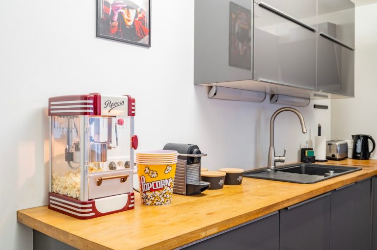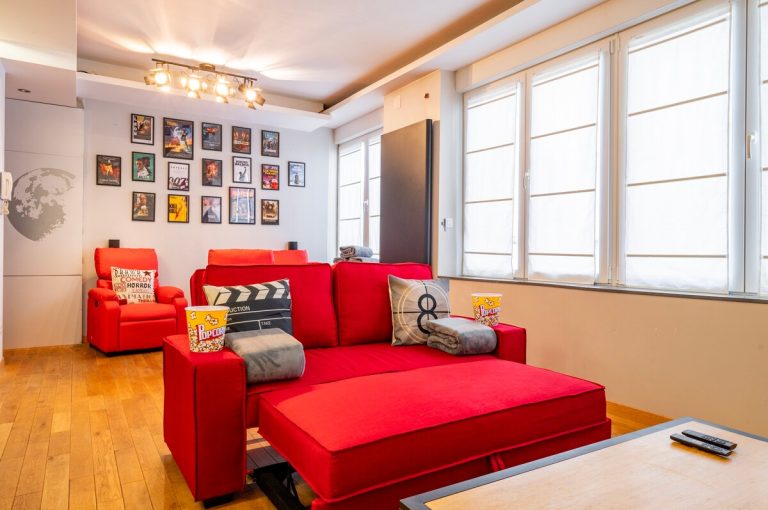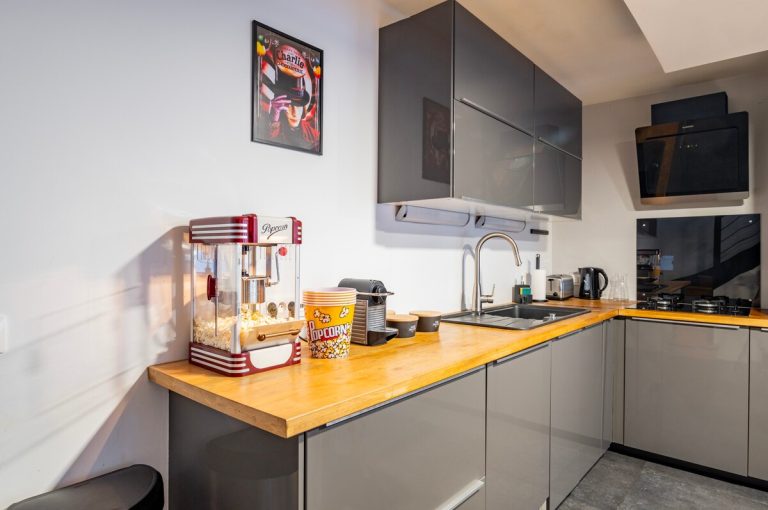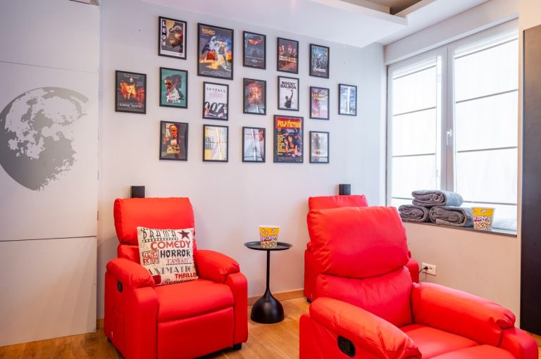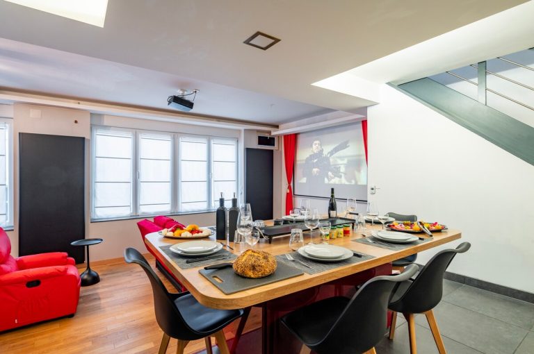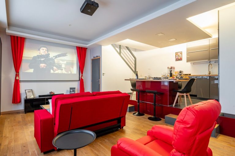 Découvrez notre logement à thème où chaque soir est une Première. Un salon transformé en salle de cinéma avec projecteur HD et son 5.1 vous attend pour des marathons de films/séries entre amis ou en famille. Pour les épicuriens : cuisine équipée et plancha pour des dîners conviviaux, suivi de popcorn frais avec notre machine authentique.