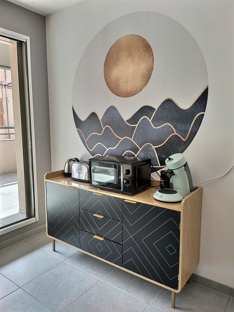 ✓ Café ; thé ; bouteille d’eau ; bouilloire ; grille-pain ; Senseo pour vous préparer un DÉLICIEUX PETIT-DÉJEUNER.
