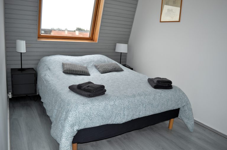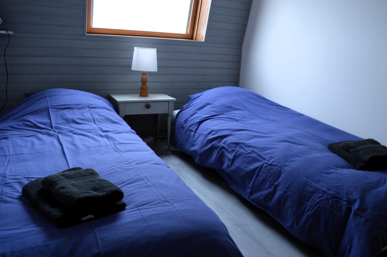 – Une première petite chambre avec deux lits simples (attention ils sont bas mais possibilité de les moduler l’un sur l’autre pour avoir un lit simple et plus de place ou des les coller pour avoir un lit double)