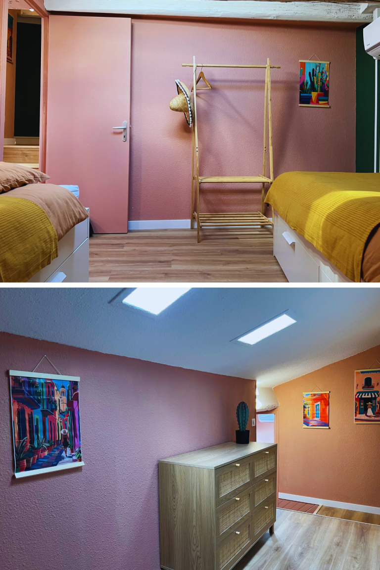 Le Mexico est un T3 en duplex de 70 m² pouvant accueillir jusqu’à 6 personnes. Situé au 1er étage, il comprend 2 chambres, une salle de bain avec WC, un WC séparé et un salon-séjour avec cuisine équipée. Climatisation, télévision connectée, linge fourni et parking gratuit à proximité. Décoration soignée, idéal pour un séjour confortable en famille ou entre amis dans le sud de la France.
