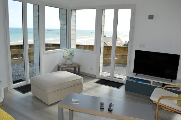 Cette maison de vacances est idéale pour un séjour entre amis ou en famille à la mer. Située en hauteur de falaise surplombant le port artificielle d’Arromanches et les plages du débarquement, vous vivrez dans un endroit paisible et agréable.
