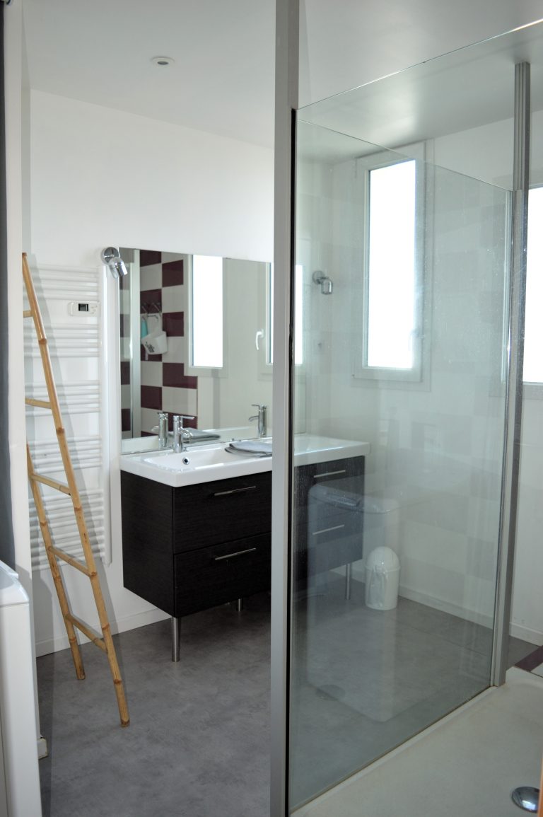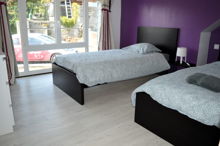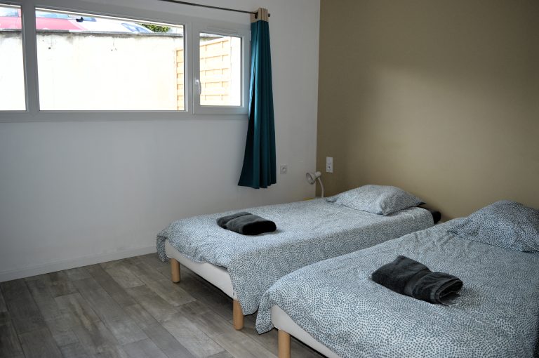 Vous pouvez aussi retrouver des toilettes indépendantes ainsi qu’une première chambre avec deux lits simples.