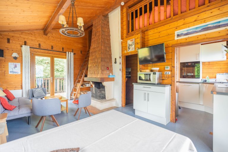 L’Écrin des Anges est un chalet chaleureux avec 2 chambres, une mezzanine et une cheminée ouverte.