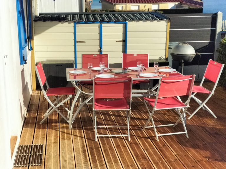 Tout est pensé pour que vous puissiez profitez de belles vacances : jet d’eau extérieur pour nettoyer objets, pieds et autre sur le retour de plage avec des petits bacs pour y ranger chaussures ou matériel de pêche par exemple, store pour la terrasse, wifi, parking, matériel bébé (lit parapluie, chaise haute et chaise de douche, livres et jeux de société tous âges…)
