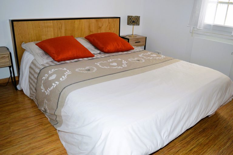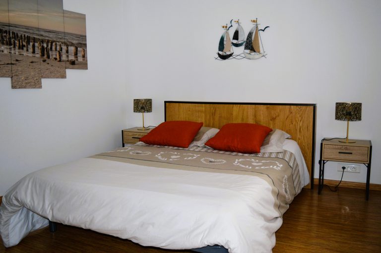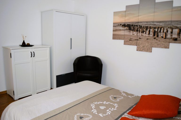 L’appartement offre deux chambres dont une première avec un lit double en 140cm et une deuxième avec deux lits simples superposés.
