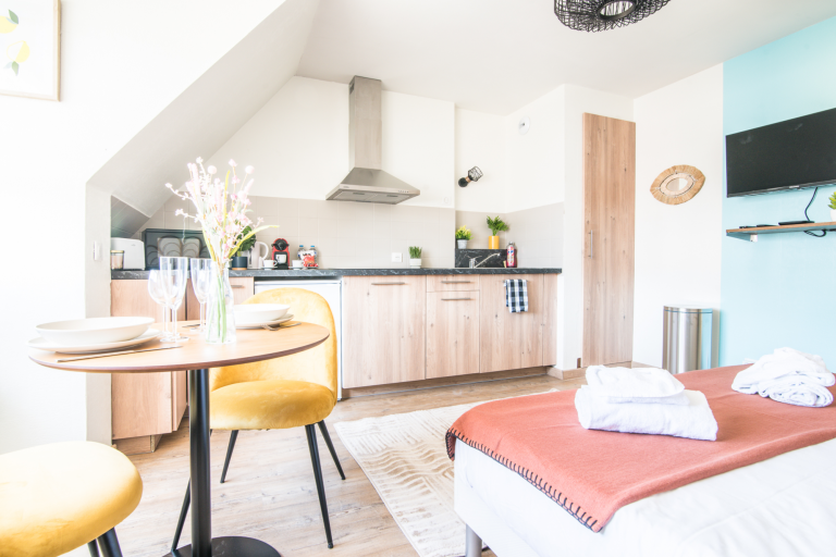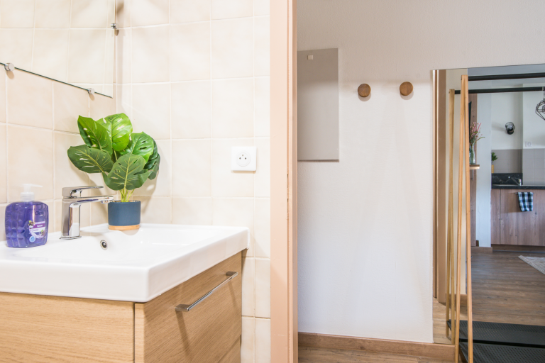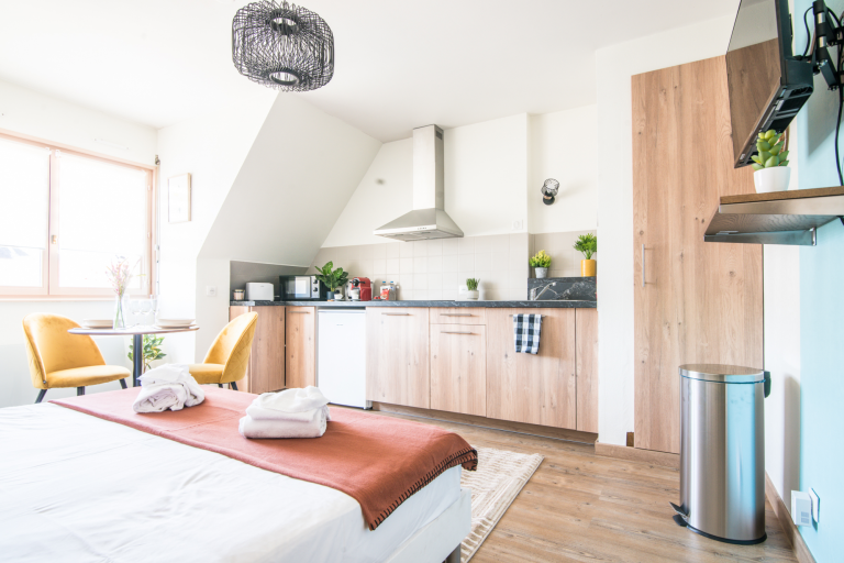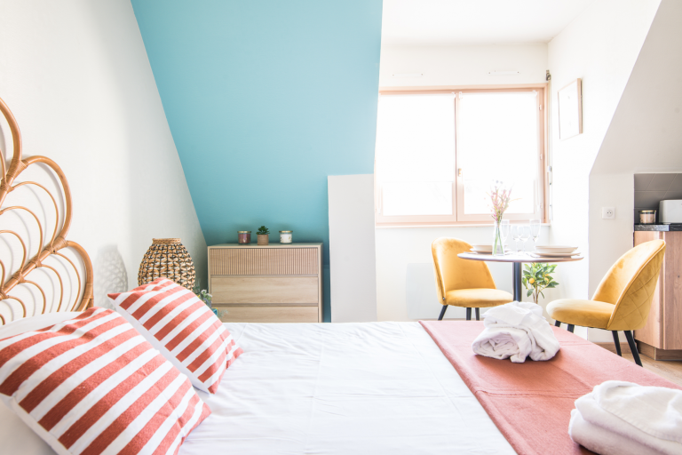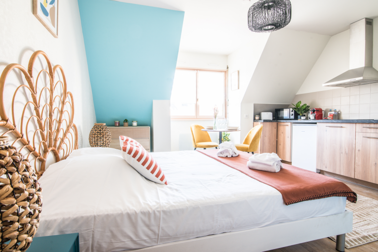Pour vos déplacements professionnels ou personnels, séjournez dans cet appartement design et Chaleureux de 32 m2 entièrement équipé, très fonctionnel et idéalement situé proche tram et des commerces au 49 rue du Lazaret