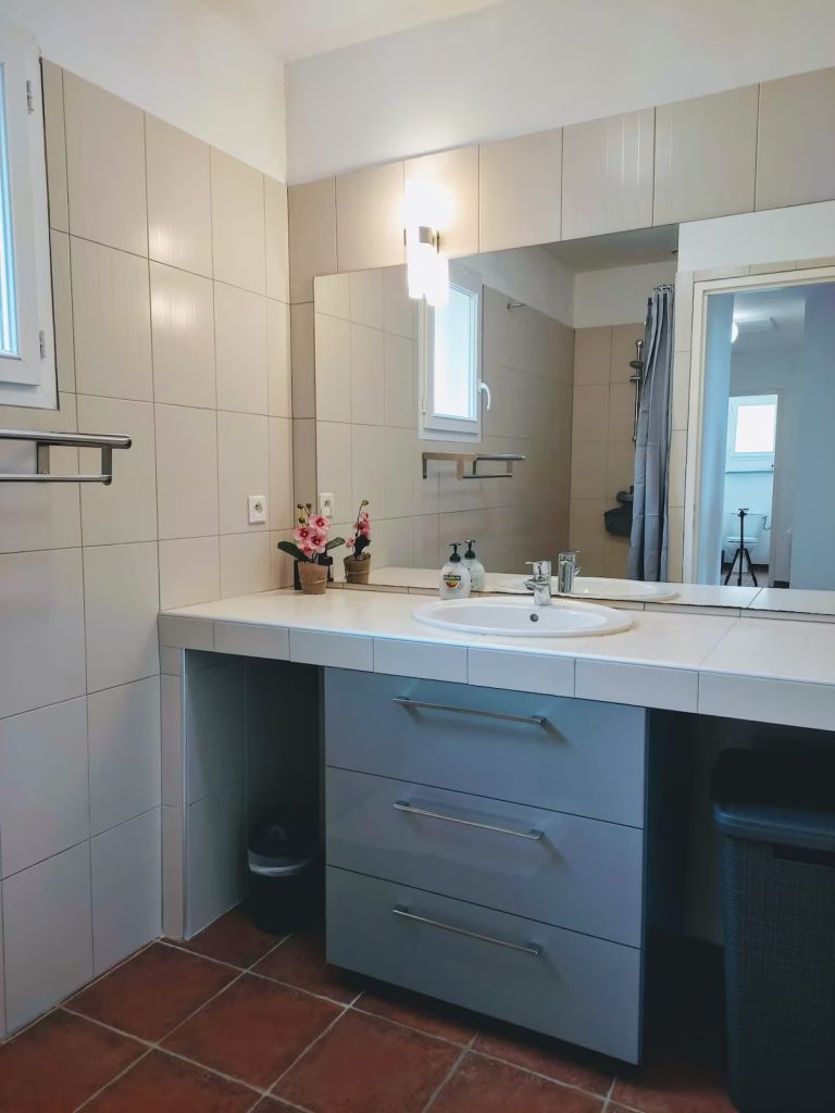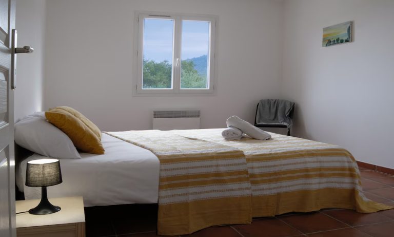 Trois chambres lumineuses avec vue mer et une grande salle d’eau vous attendent à l’étage pour un séjour confortable où les lits sont faits et le wifi est à votre disposition.