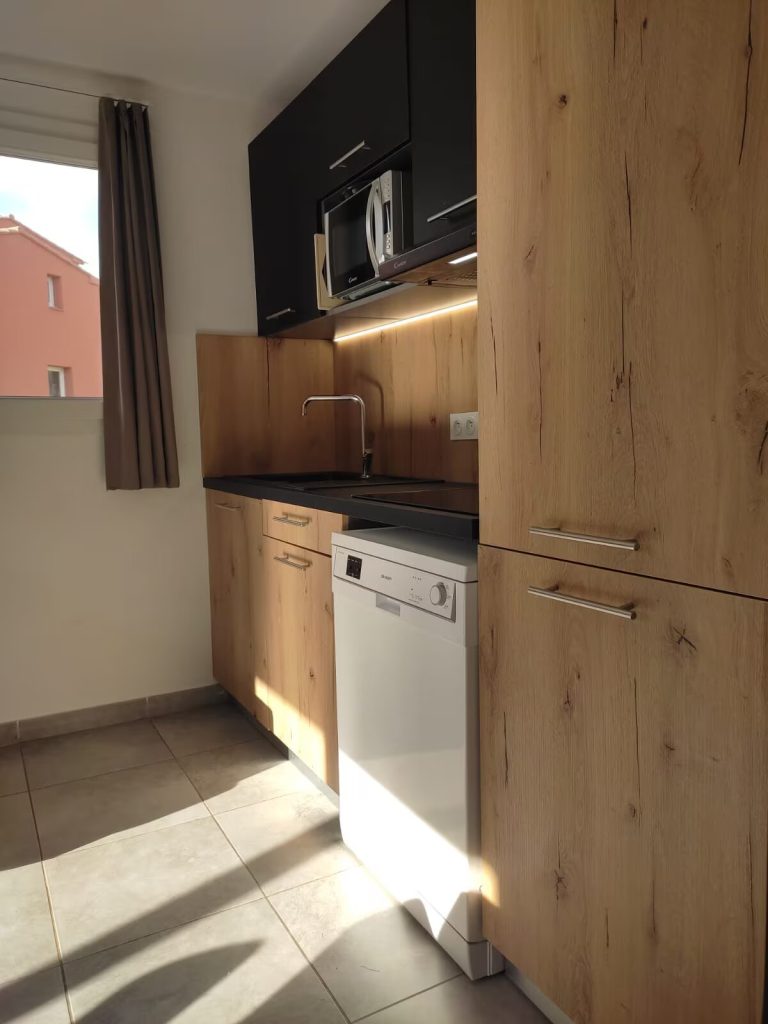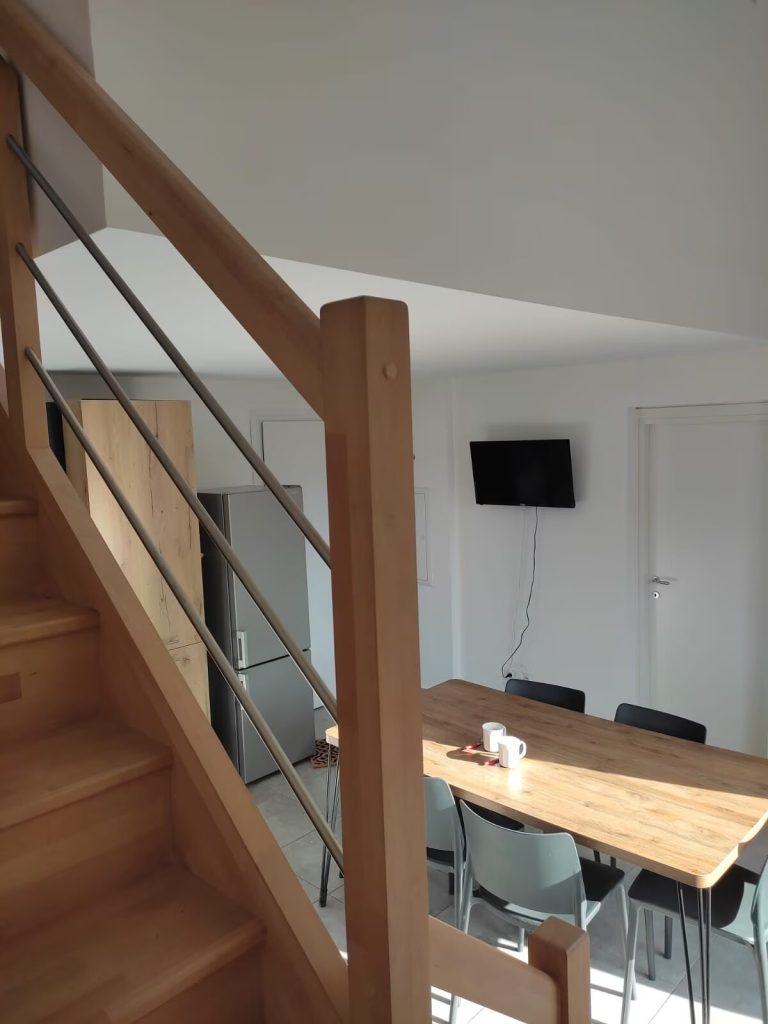 * 1 Pièce de vie avec cuisine équipée, d’un coin salon et d’une table de salle à manger au RDC.
