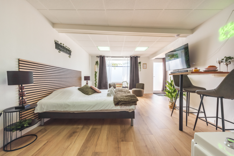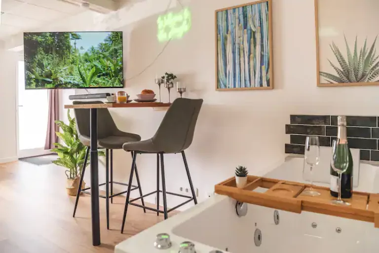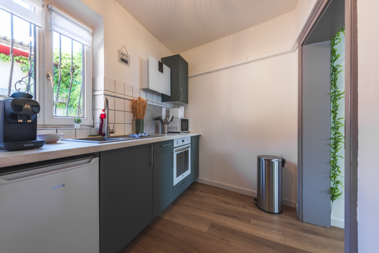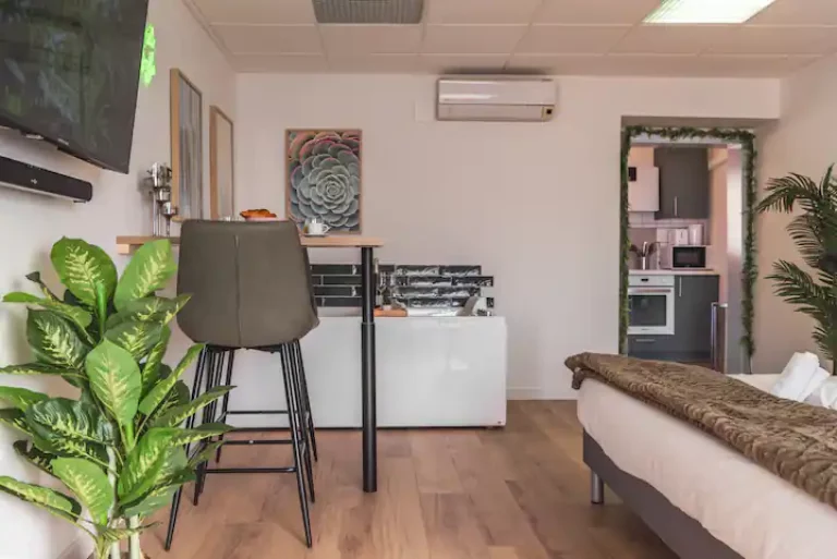 Situé au 14 route d’Ohlungen, à quelques minutes du centre-ville de Haguenau et des accès autoroutiers, le « Jungle Romantique » vous invite à un séjour paisible et relaxant dans un appartement élégant de 40m2.