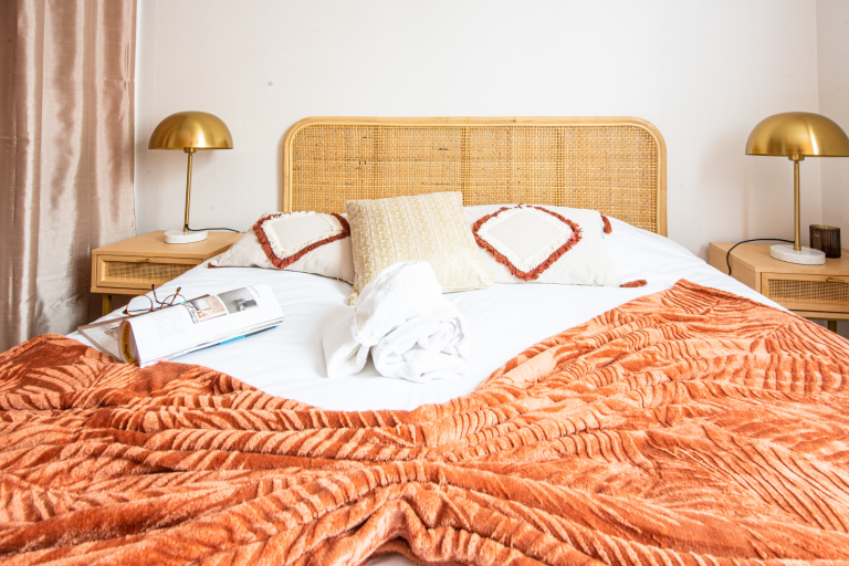 Trois chambres confortables avec des lits de qualité, des oreillers moelleux et des rangements pratiques.