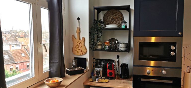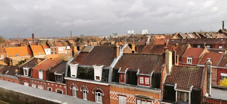 Situé au 4ème étage, avec ascenseur, il vous offre une vue imprenable sur les toits et les cheminées des anciennes friches industrielles réhabilitées, ainsi que sur les façades en brique rouge de la ville de Roubaix.