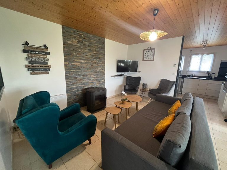 ✅ Salon chaleureux avec canapé-lit (160×200 cm) , poêle à bois , TV et Wi-Fi