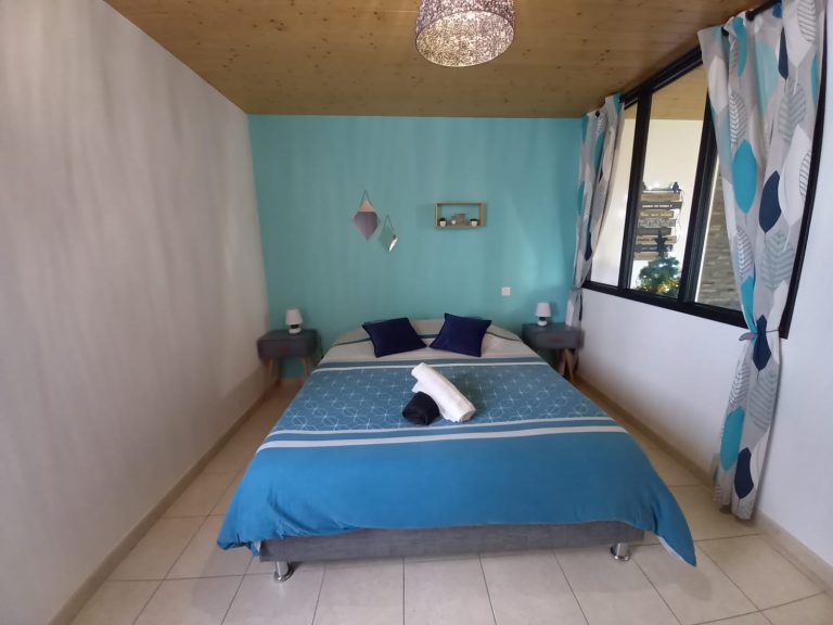 1 chambre avec lit double (140×190 cm) et accès direct à la terrasse vue mer