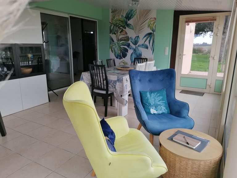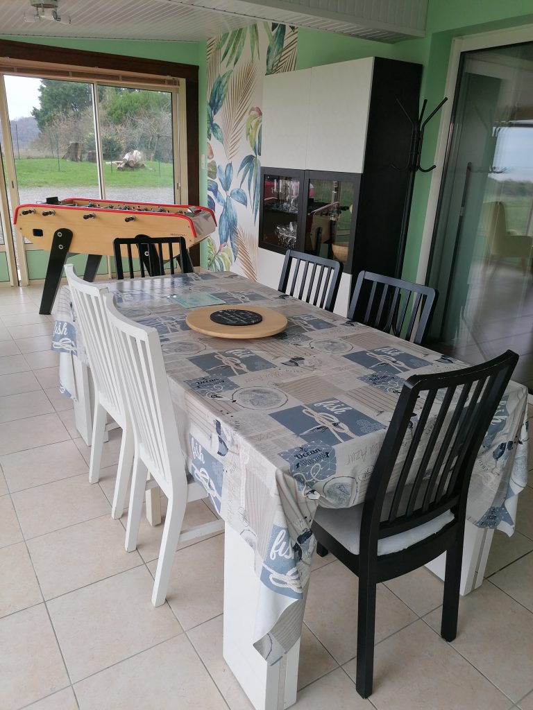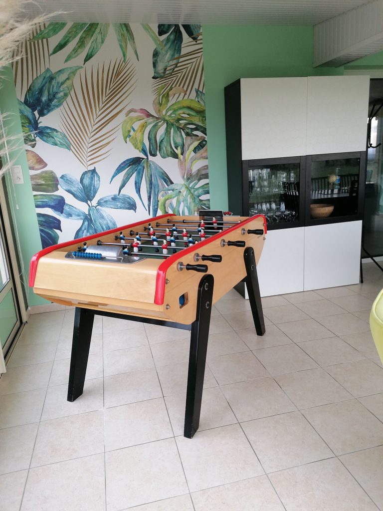 ✅ Véranda panoramique avec grande table , fauteuils confortables et baby-foot