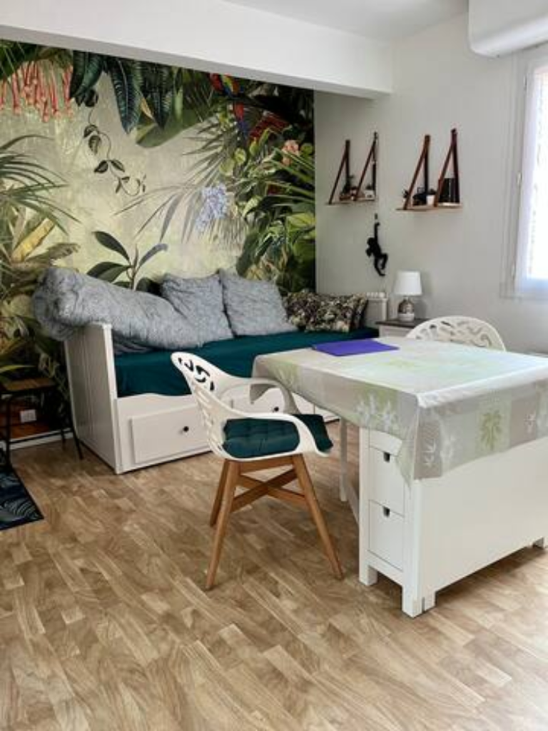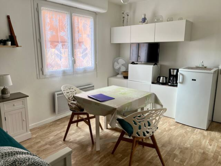 Ce joli studio sur le thème de la nature classé 2 étoiles peut accueillir 2 personnes. Il est au calme dans une résidence à 50m de la plage.