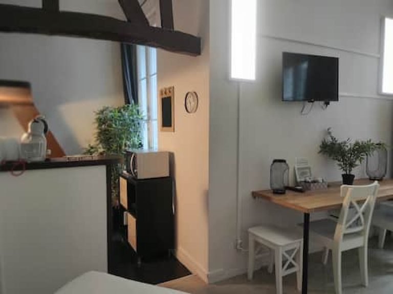 Le Studio de charme Rouen Centre Saint Gervais peut accueillir jusqu’à 4 personnes et il est composé de :