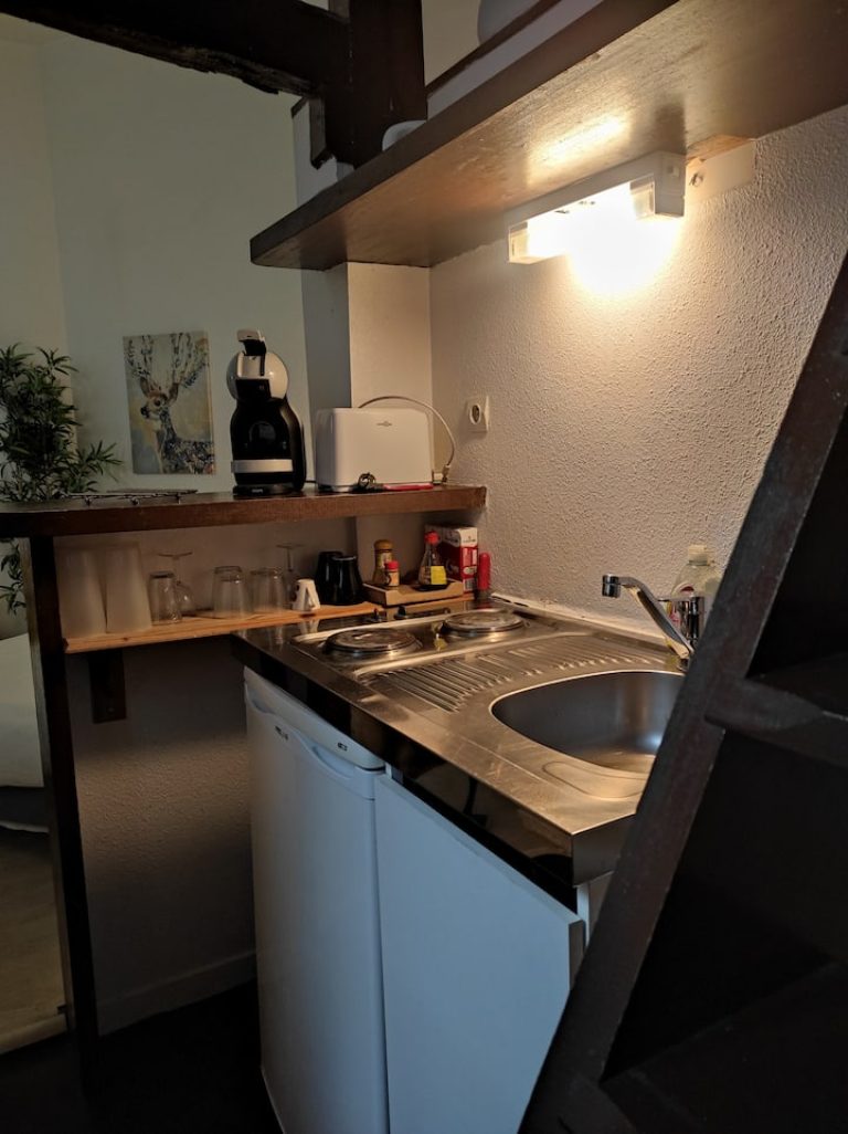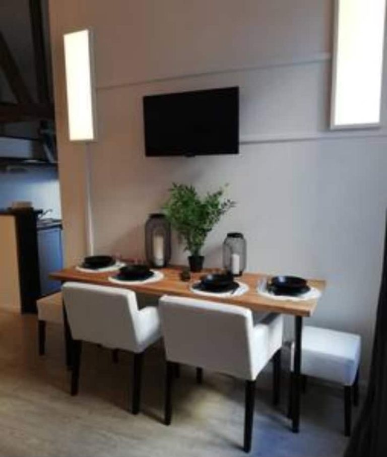Charmant studio de 20 m² au cœur de Rouen, idéal pour 4 personnes. Situé dans un immeuble ancien au calme sur cour intérieure, il offre un lit double, une mezzanine pour 2 enfants, un coin salon avec TV, une cuisine équipée et une salle de bain avec douche. Plateau d’accueil offert à l’arrivée. Proche des commerces, restaurants et sites incontournables de Rouen.