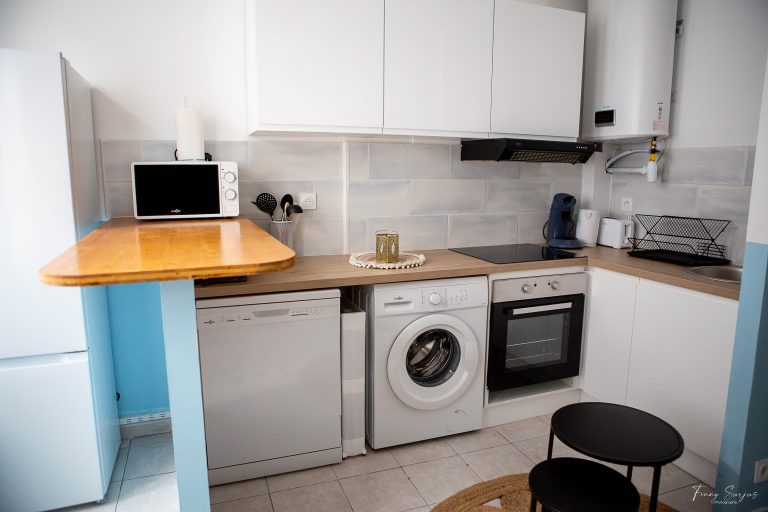 Dès que vous entrez, vous êtes accueilli par un espace lumineux et contemporain, conçu pour votre confort. La pièce à vivre, équipée d’un canapé-lit et d’une télévision, est l’endroit parfait pour se détendre après une journée d’exploration.