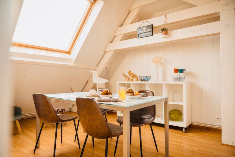 Notre résidence est composée de 5 suites, la suite que vous avez sélectionnée est la suite ARTHUR faite d’une déco moderne pour vous faire passer un agréable séjour. La suite Léonard se situe au troixième étage de la résidence, accessible sans ascenseur.