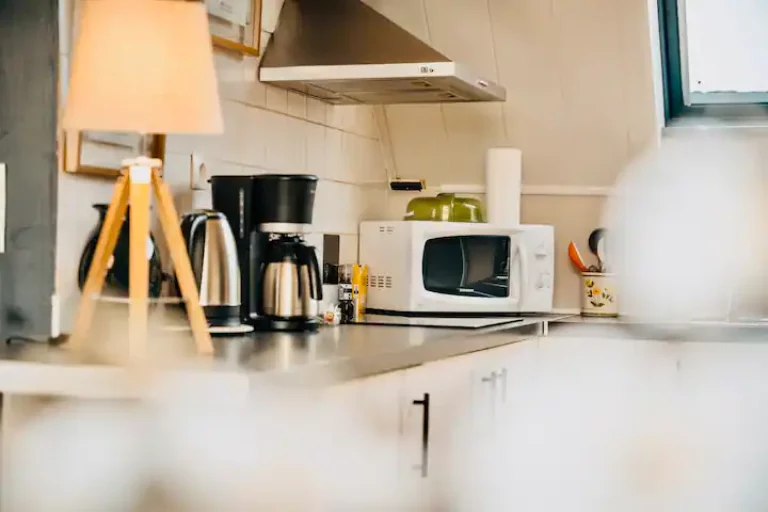 – une cuisine ouverte sur le salon séjour, équipée d’une table 6 personnes. La cuisine est équipée d’un regrigérateur, d’un four et d’un micro onde ainsi que de plaques de cuissons et d’un évier. Tout le nécessaire pour faire à manger (casserole, couvert, ustensile, assiettes ect… est inclus) vous avez également à votre disposition une cafetière filtre, d’une bouilloire, et nous vous offrons le café et le thé! 🙂